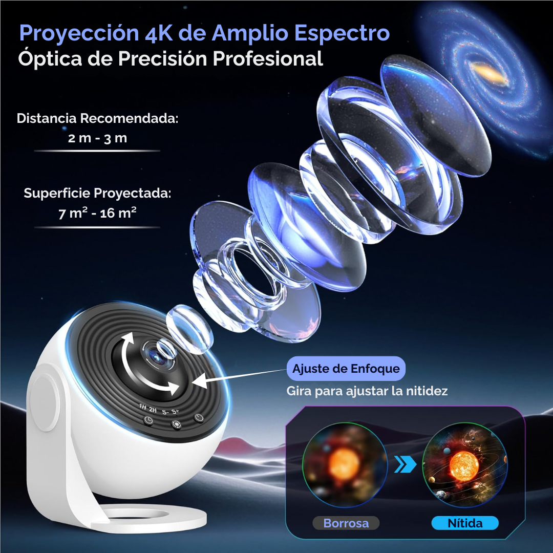 Nuestro proyector transforma cualquier habitación en un cielo lleno de detalles. Imágenes más nítidas, materiales premium y una experiencia envolvente que otros modelos simplemente no pueden igualar.